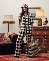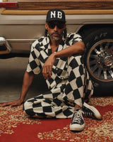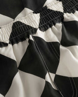 Crafted from breathable Tencel material, these pants are your versatile companion for relaxation and style. Whether you're unwinding at home or stepping out for the evening, their black and white checkered pattern, relaxed fit, and laid-back design have you covered.