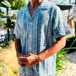 The Encinitas shirt in blue is crafted from a blend of cotton, viscose, and polyester, offering an extra-light, airy fabric for a breezy feel. Combining comfort and style, it is finished with detailed jacquard stitching.
